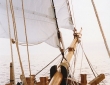 A sail, that is of 245 m2, is effective enough to provide acceleration up to 9 knots. The boat is excellent for control under the sail. The rigging is made of natural sisal and manila ropes, a sail is made of synthetic fabric. Three people is enough to control the boat. 15 ton ballast provides stability in accordance with modern requirements.